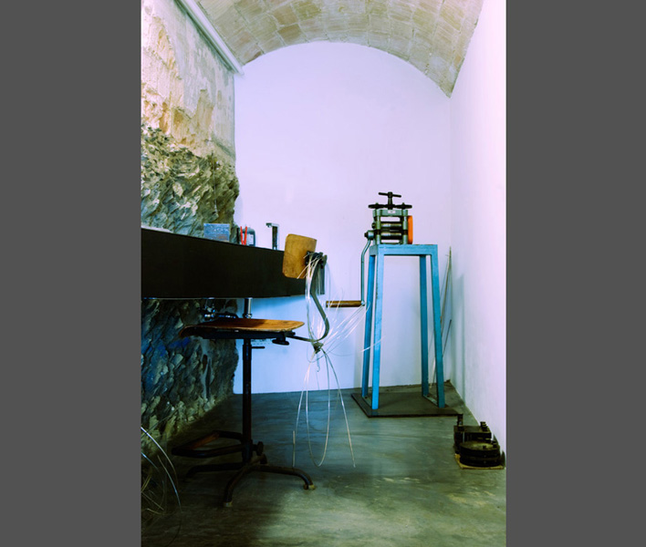 Com en una peça més, pedra, metall i vidre es combinen en un joc de formes per crear un espai que és alhora taller creatiu i punt de venda exclusiu d'aquestes joies artesanals.